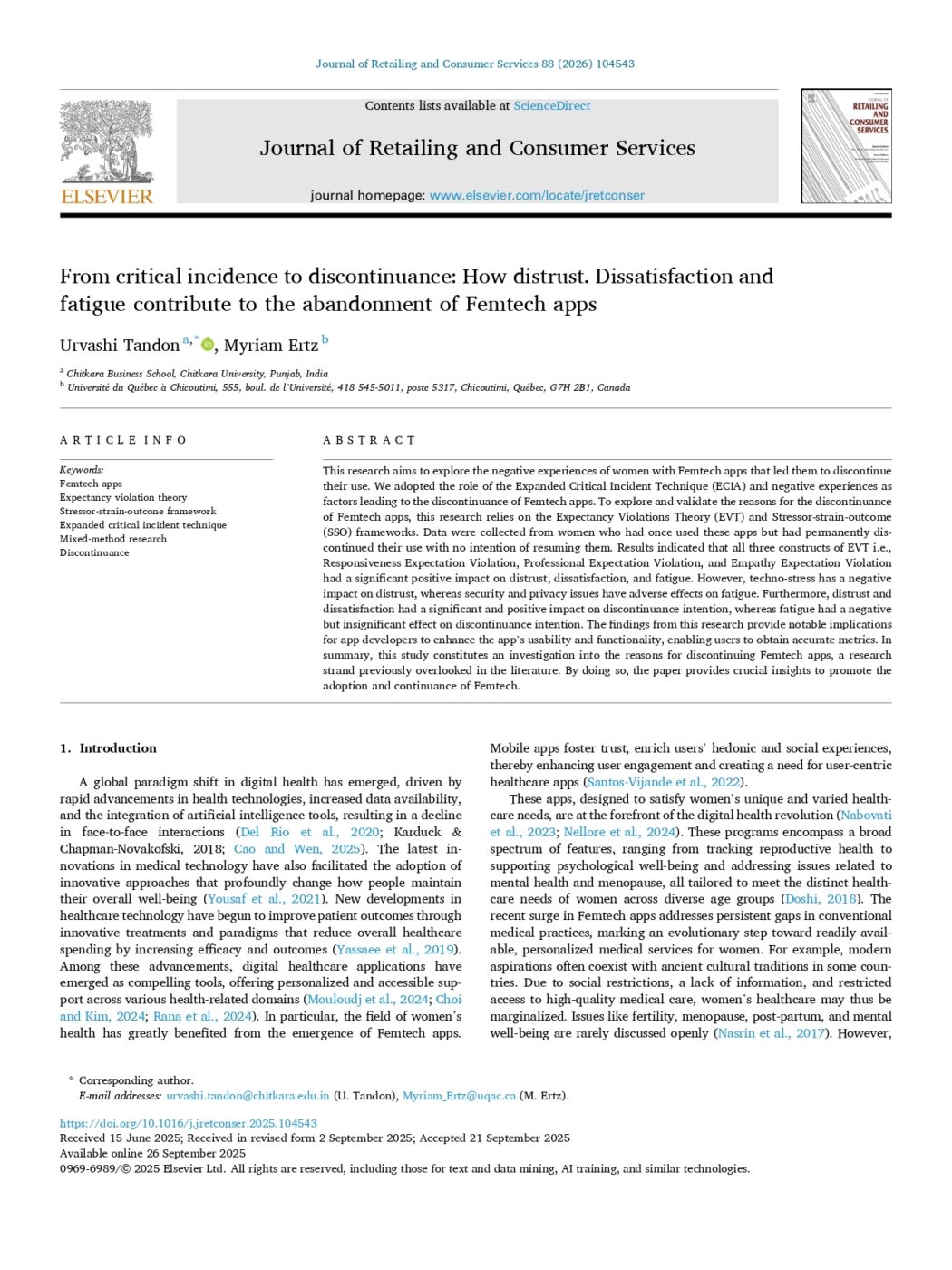 Nouvel article publié dans le Journal of Retailing & Consumer Services par la Chaire TDS !